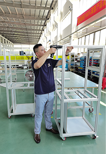 某企業采用4545工業鋁型材,成功構建機械配件生產設備的支撐框...